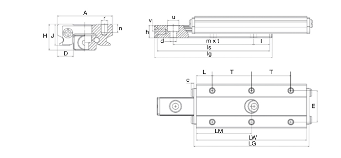 | Part Number | L | E | D | J | r x n | c | LG | LW | T | No of Holes | LM | C | C0 | Mr0 | Mp0 | My0 |